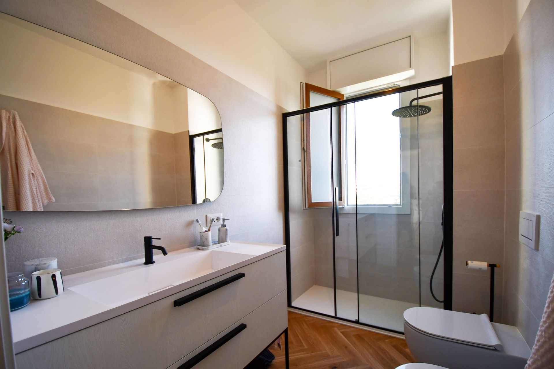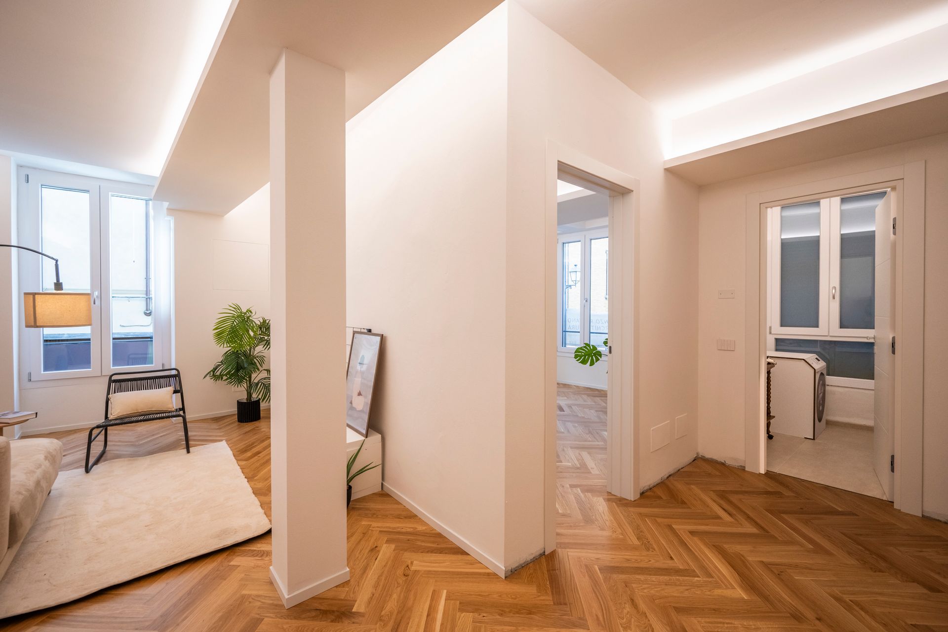 Ristrutturazione appartamento con finiture di pregio, la scelta dei materiali e mobili su misura per valorizzare gli spazi.