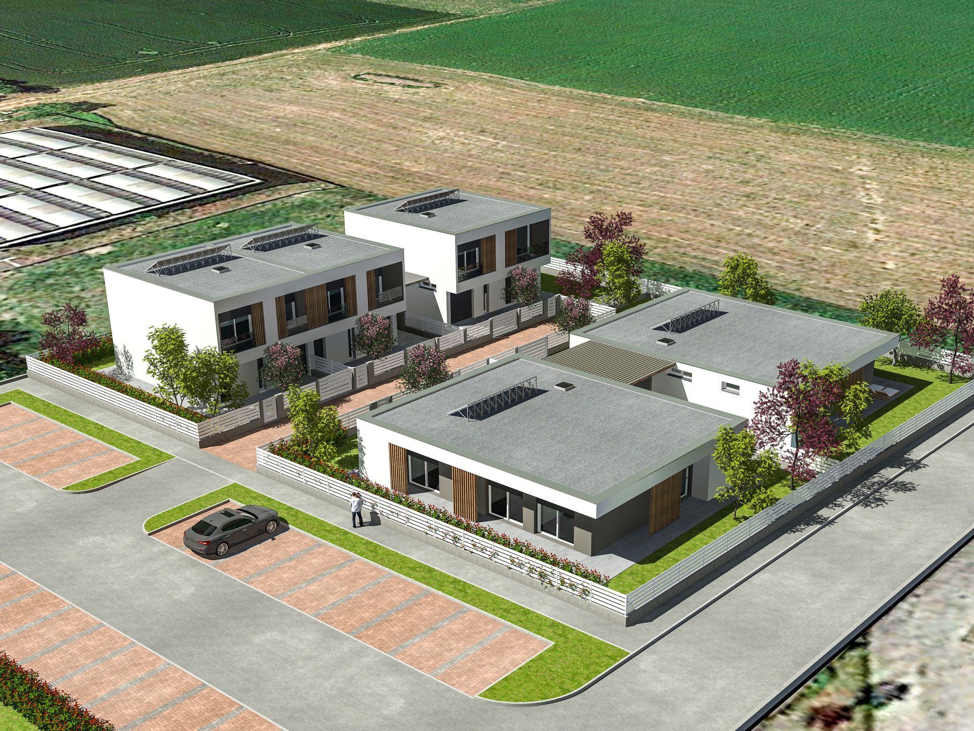 Progettazione di un complesso residenziale formato da ville indipendenti e appartamenti.